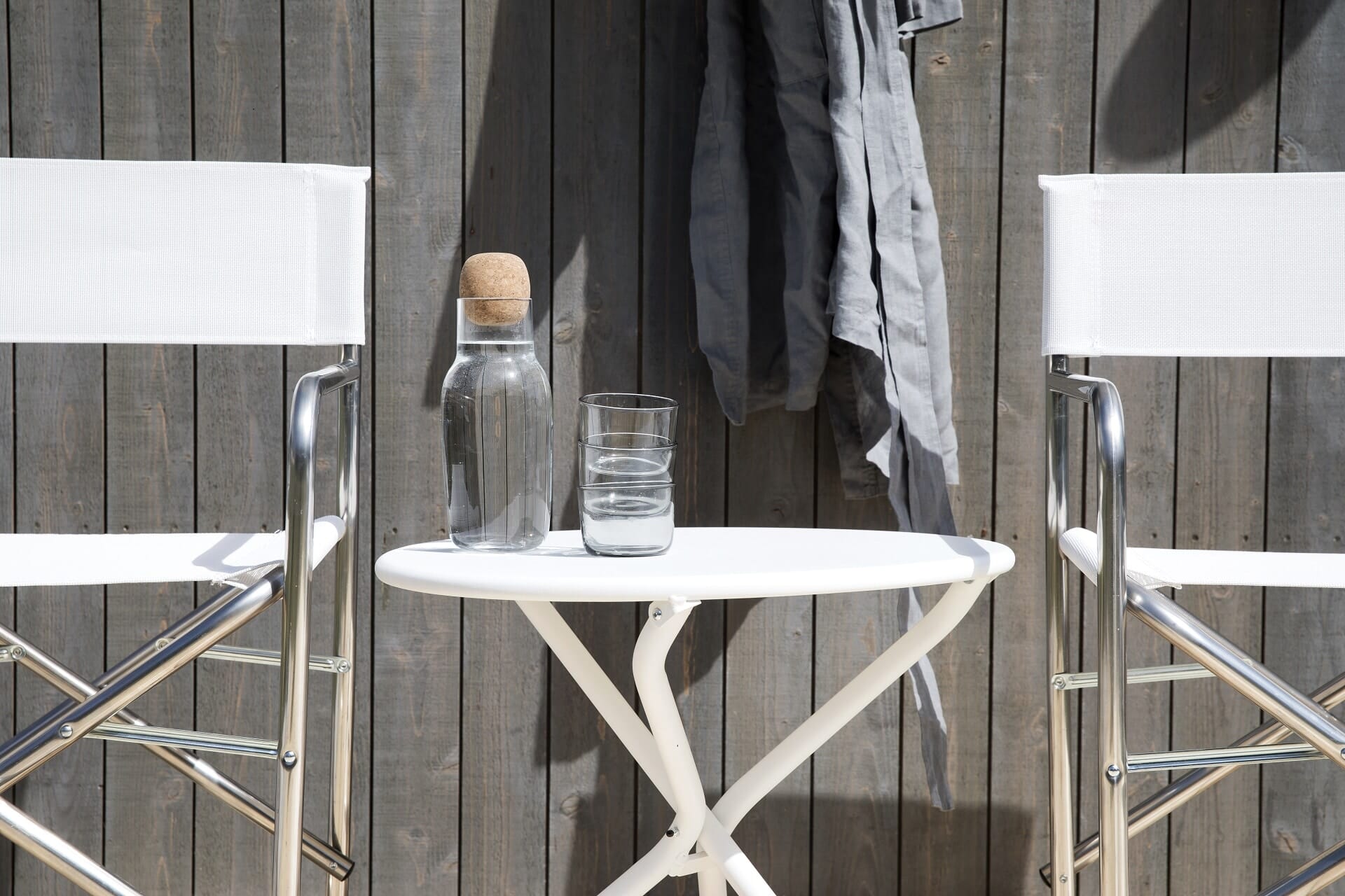 Bord Tris fra Fiam er et praktisk sammenleggbart bord i pulverlakkert galvanisert stålplate og pulverlakkerte aluminium ben.