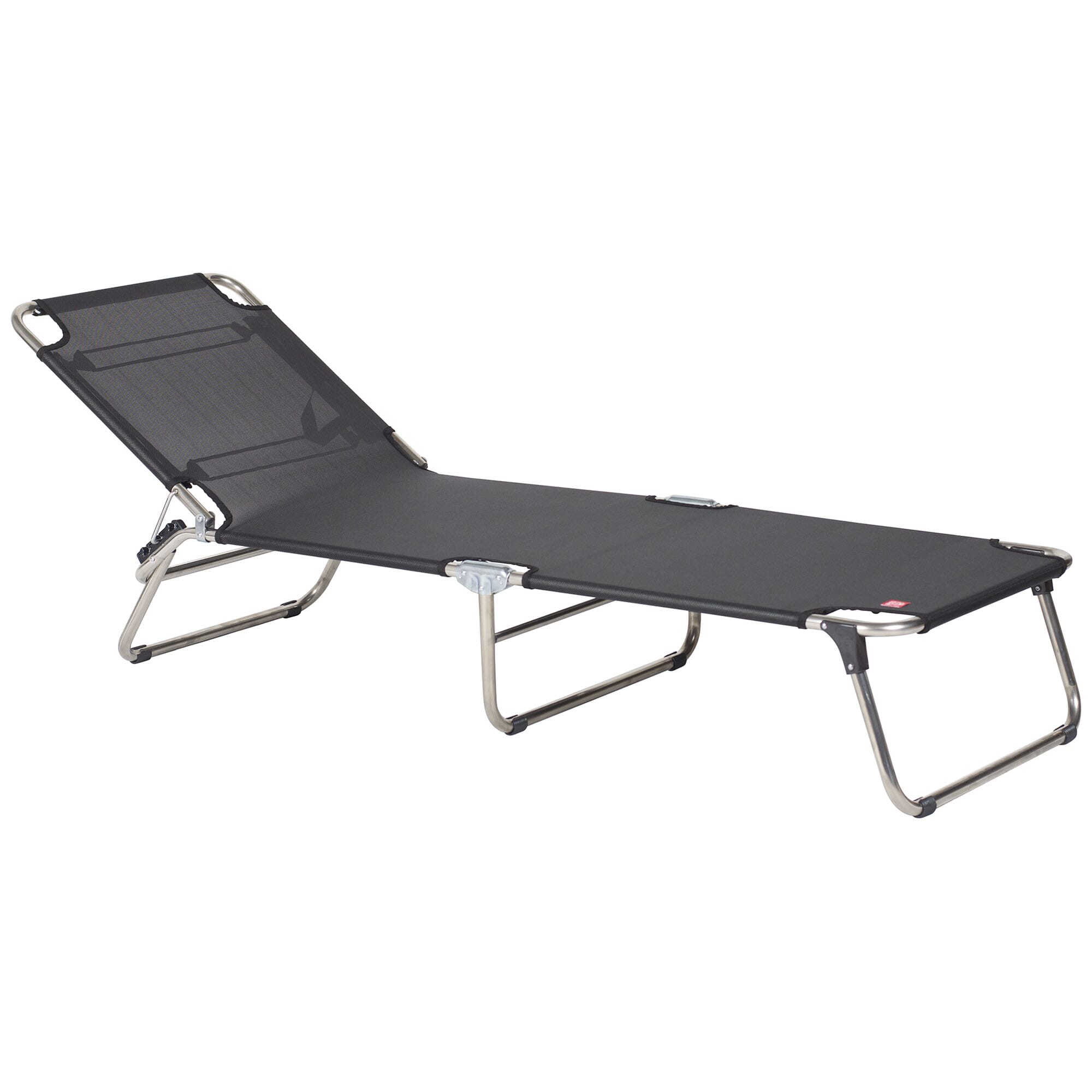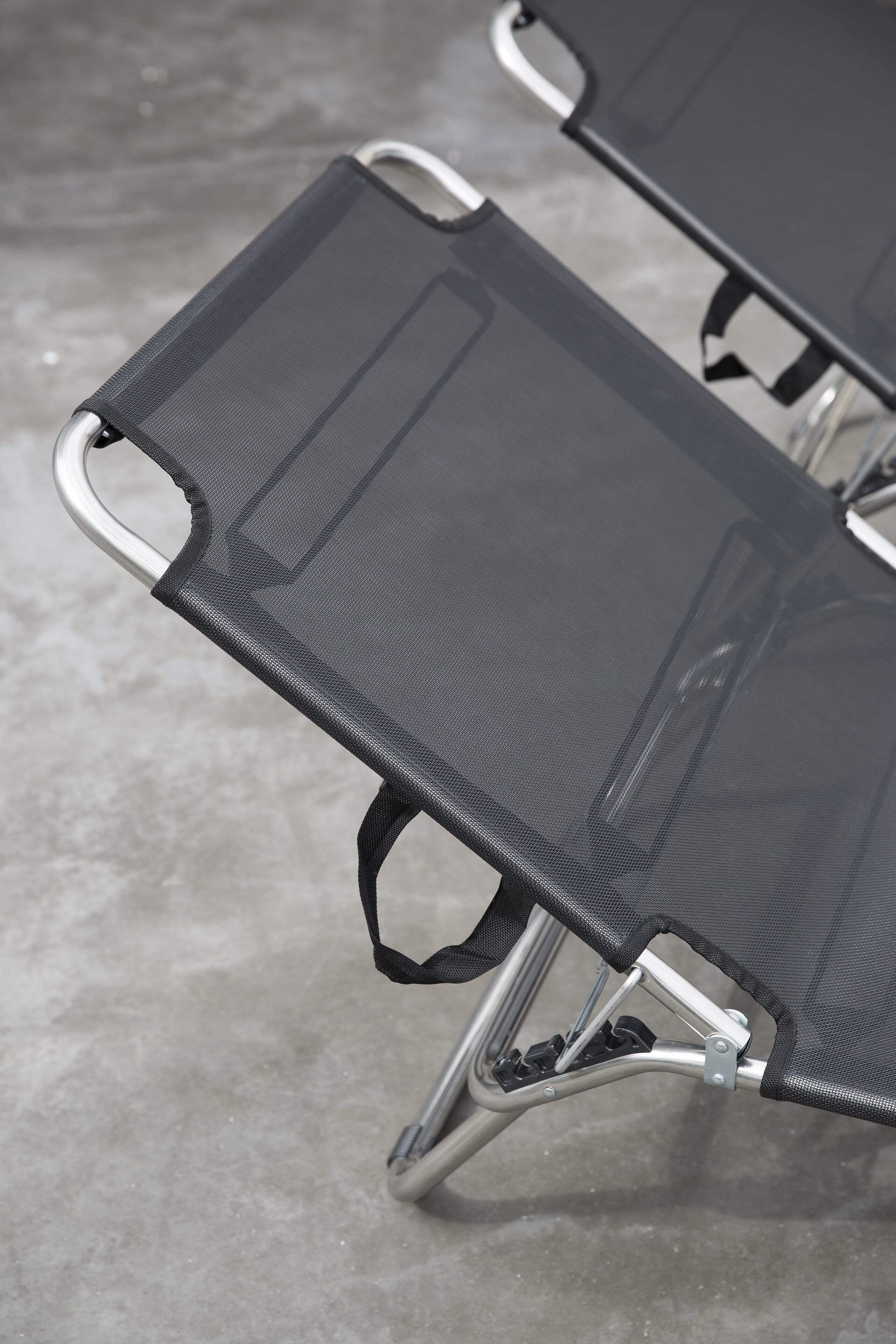 Det er justerbar ryggstøtte i fire posisjoner. Solsengen er sammenleggbar med bærehåndtak, noe som gjør den svært enkel å frakte med seg.
