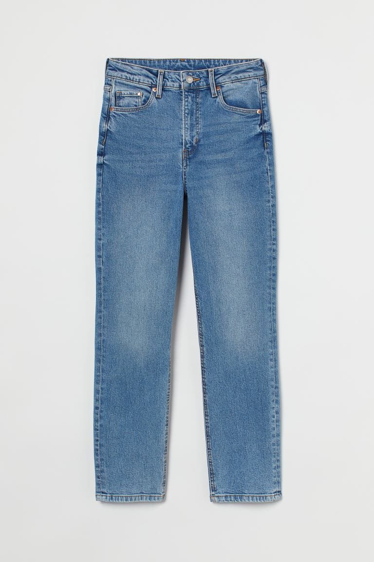 En ankellang 5-lommersjeans i vasket denim med ekstra høy midje og smale ben.