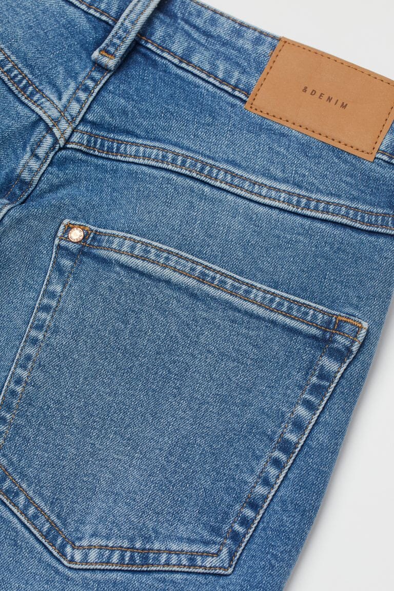 Jeansen er laget delvis av resirkulert bomull.