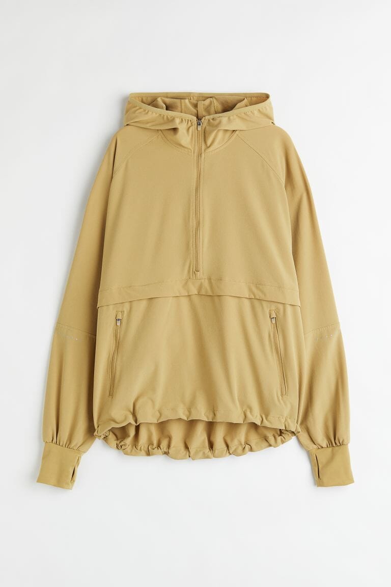Anorakkmodell med fireveis-stretch for maksimal komfort og bevegelse. Partier i mesh for best mulig ventilasjon. Glidelås med parti i mesh øverst, ettersittende, mykt drapert hette og høy krage som beskytter deg mot vinden. Raglanermer for minimal friksjon og økt bevegelighet og mansjett med tommelhull for å holde ermene på plass og sørge for ekstra varme på håndledd og hender. Lommer foran med glidelås og innvendig lomme til mobilen som hindrer den i å sprette rundt mens du beveger deg. Skjult, elastisk snøring nederst for en tilpasset passform. Refleksdetaljer for økt synlighet ved utendørs aktivitet.